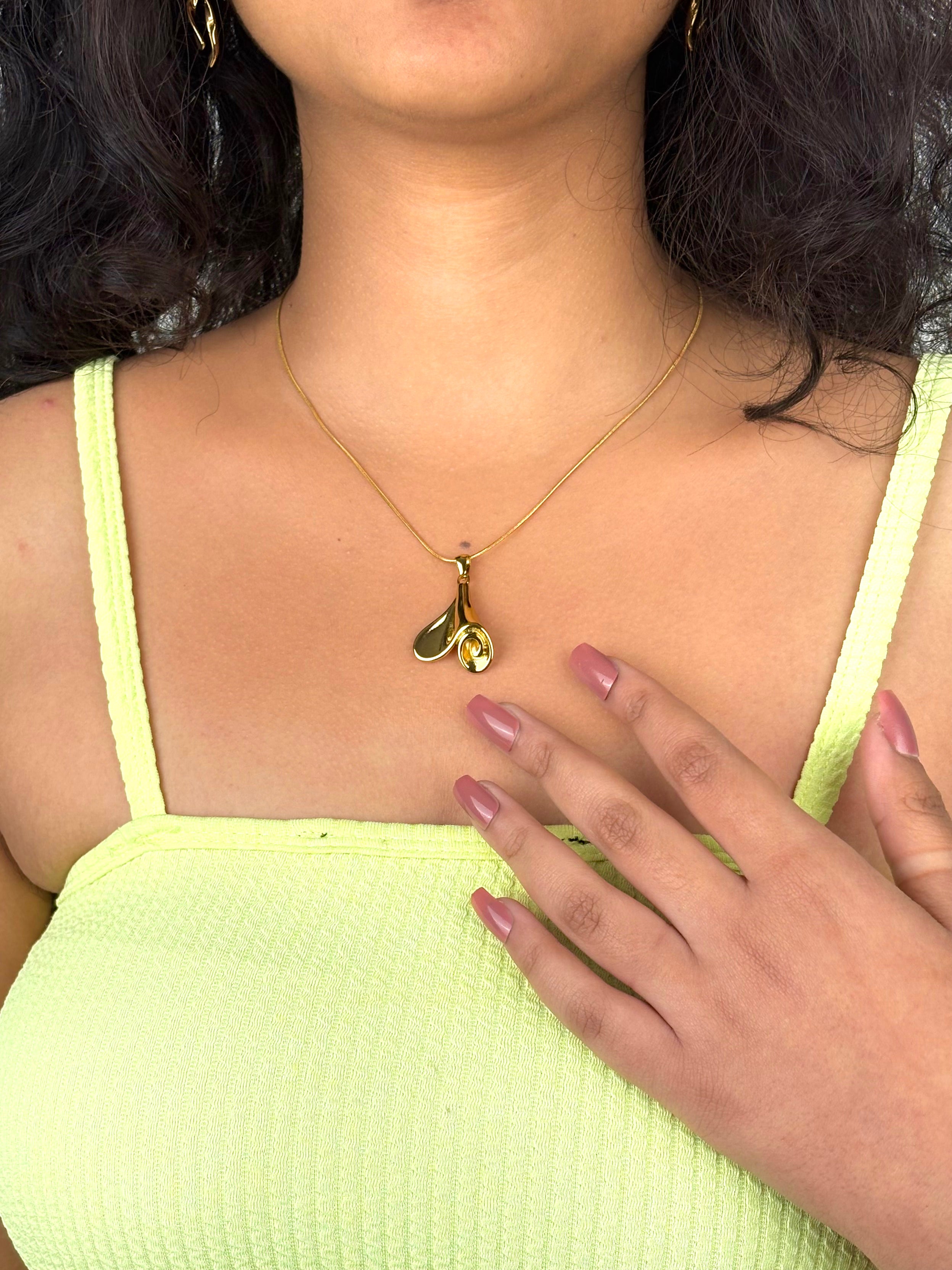 Inspired by the delicate beauty of nature, the Golden Bloom Pendant captures the essence of a flower in fluid motion. Crafted with 18k gold plating on a durable stainless steel base, this elegant piece is waterproof, anti-tarnish, and made to last.