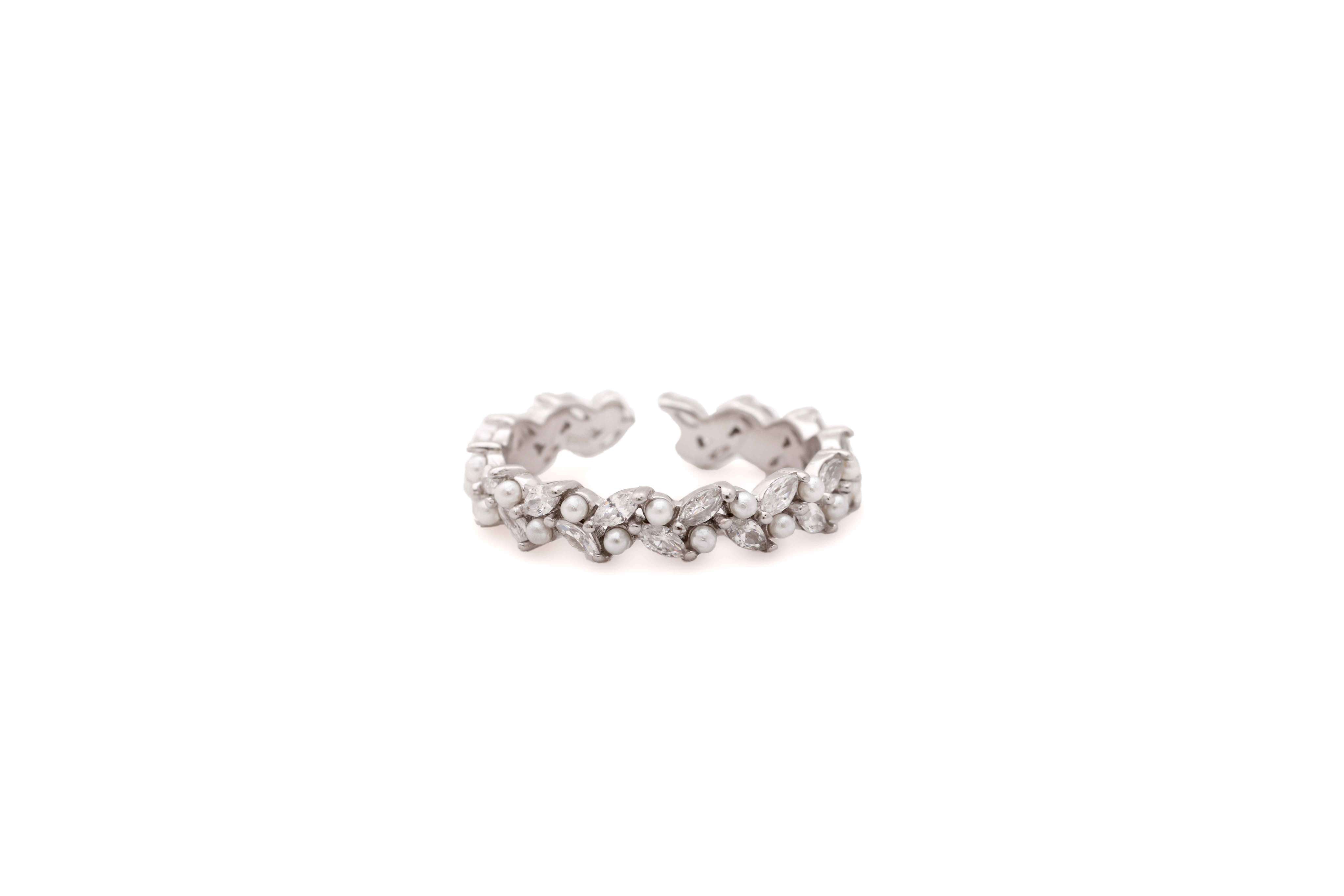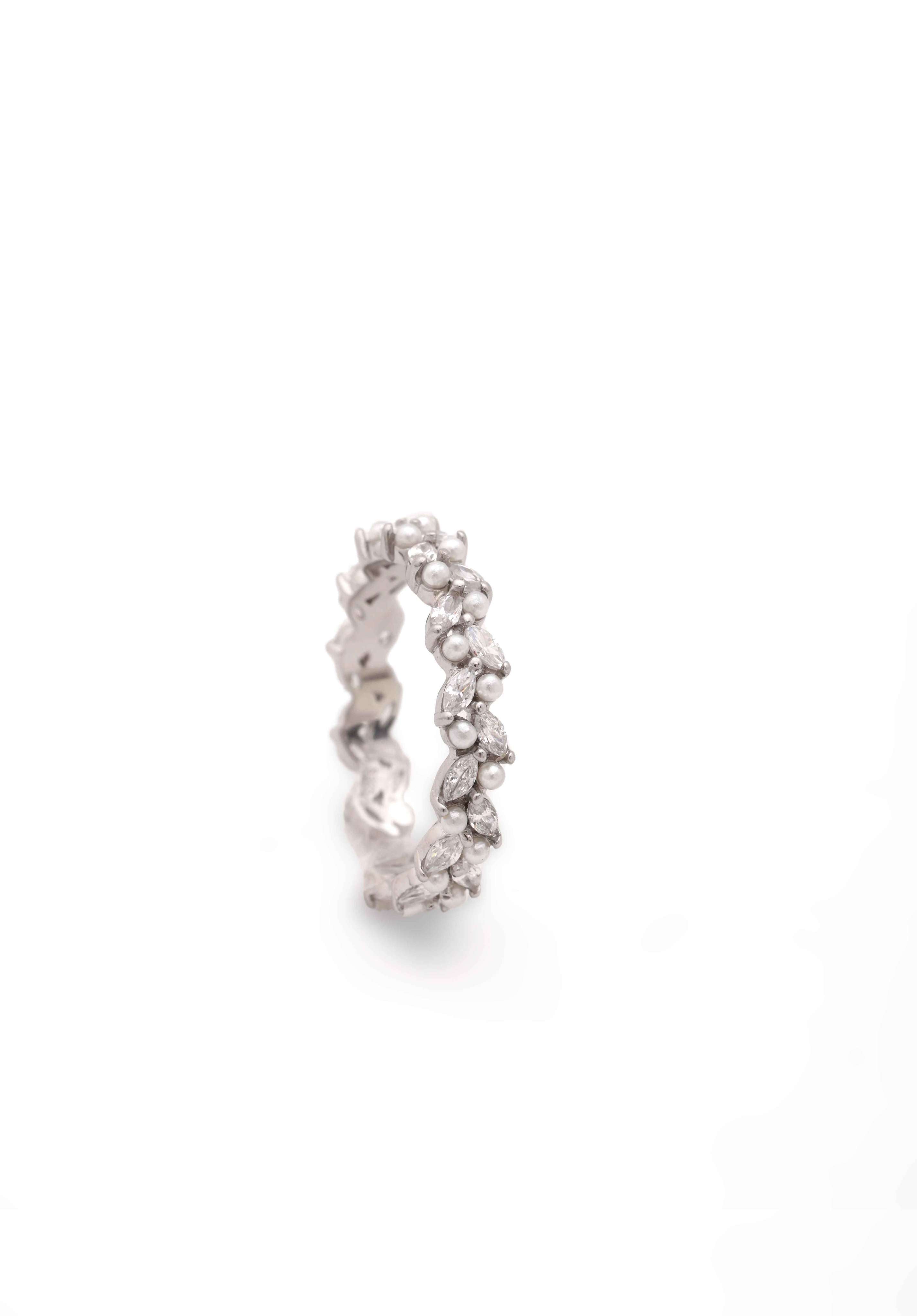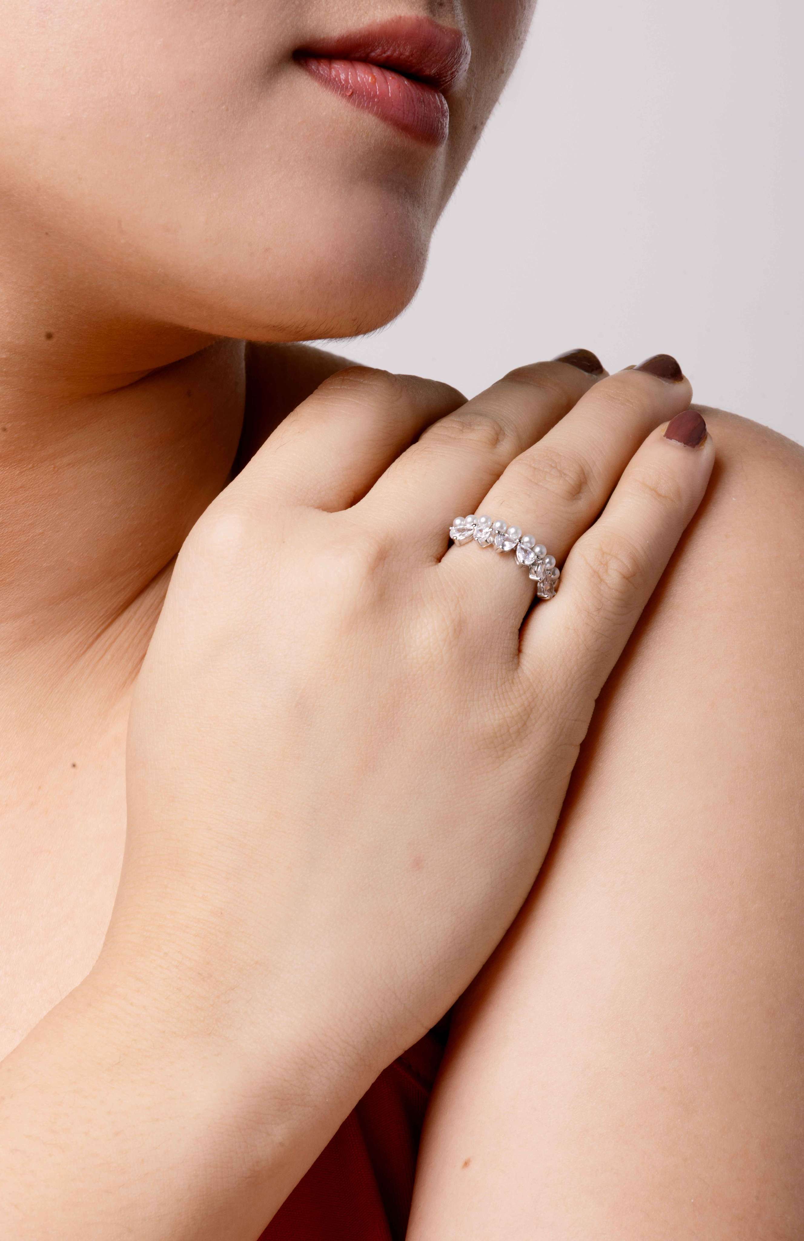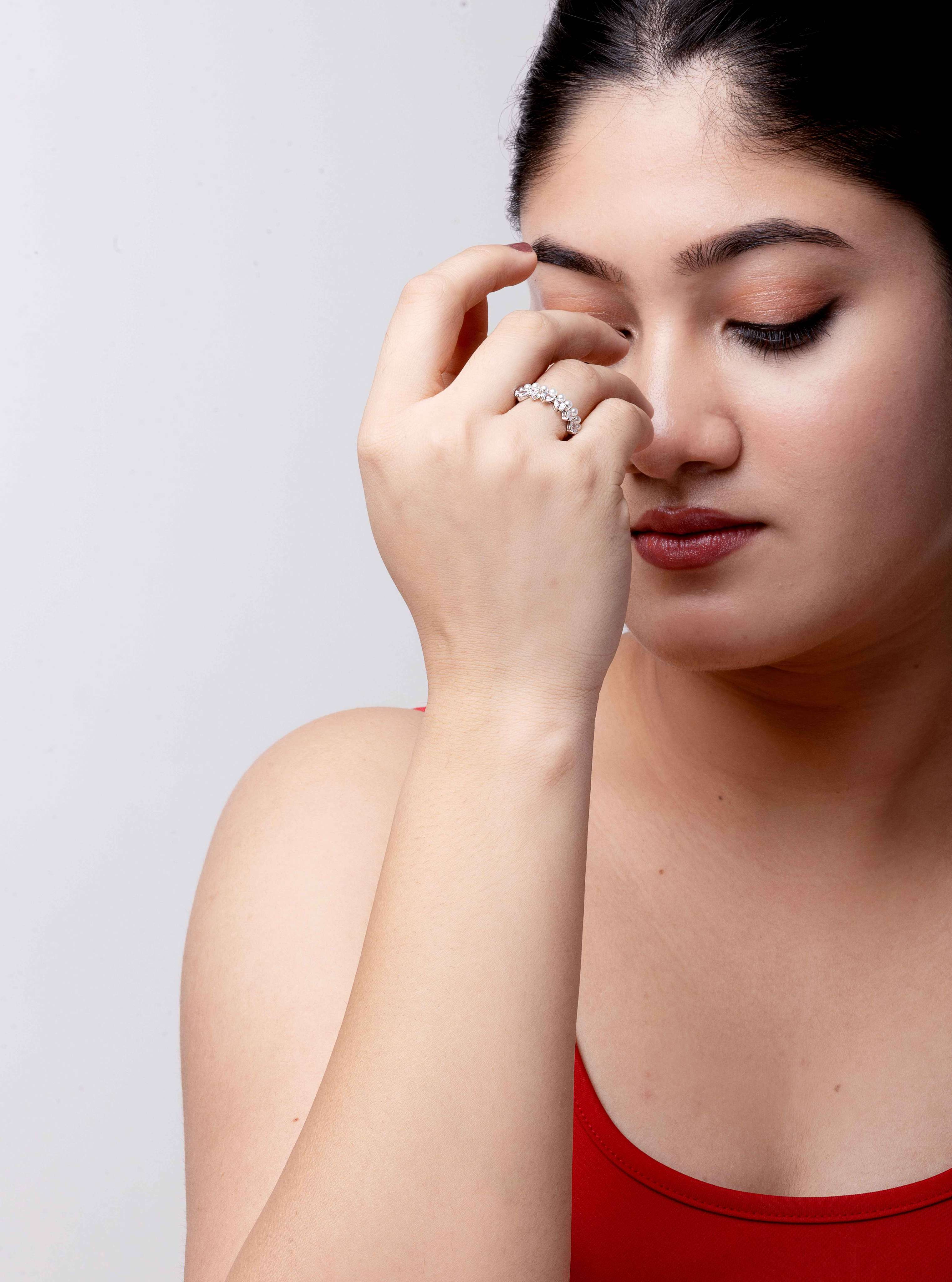 Celebrate timeless beauty with our Blossom Eternity Band, a ring that radiates elegance with every sparkle. Expertly crafted in 92.5 sterling silver, this exquisite band features a continuous row of dazzling cubic zirconia stones, set in delicate floral clusters that symbolize everlasting charm.