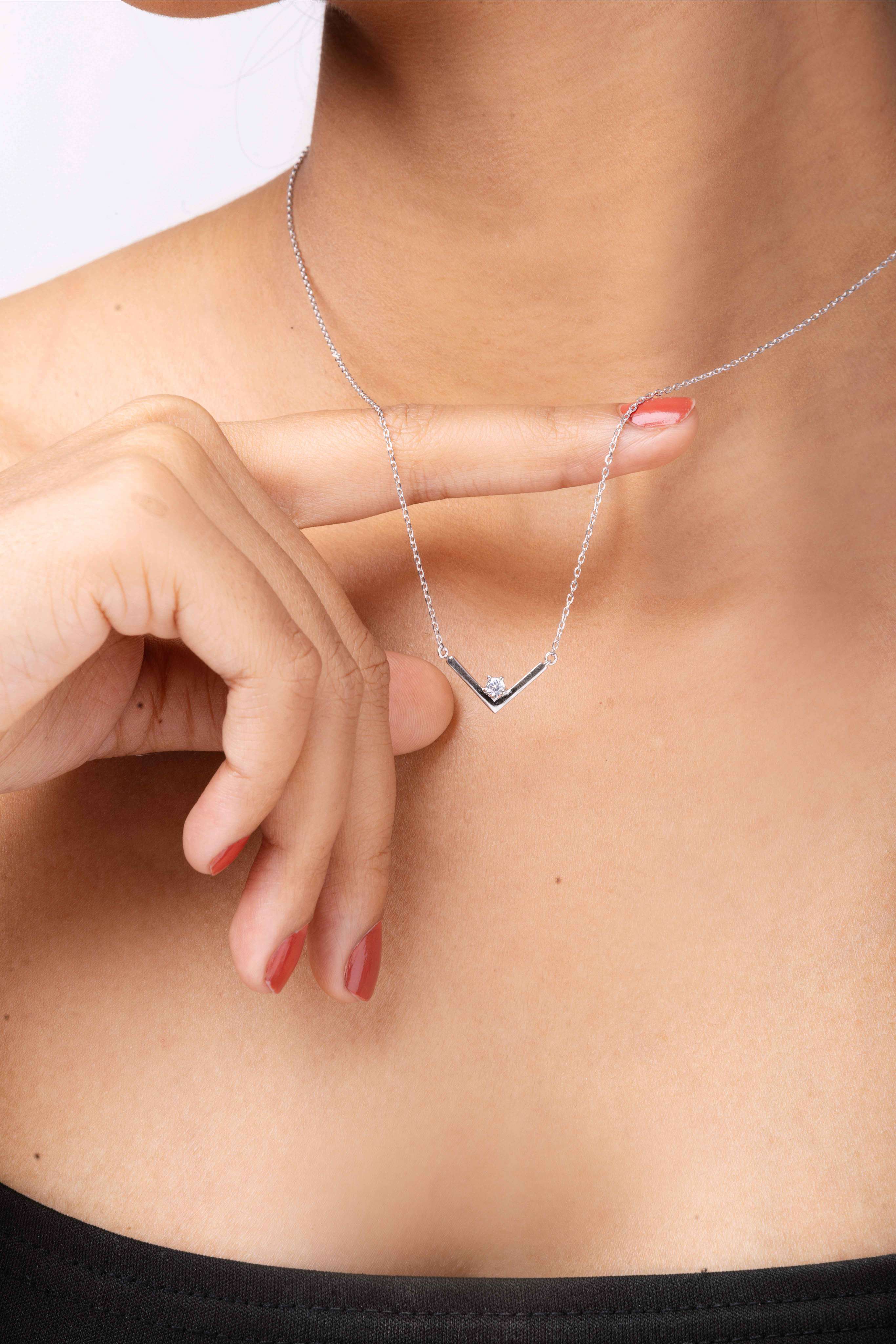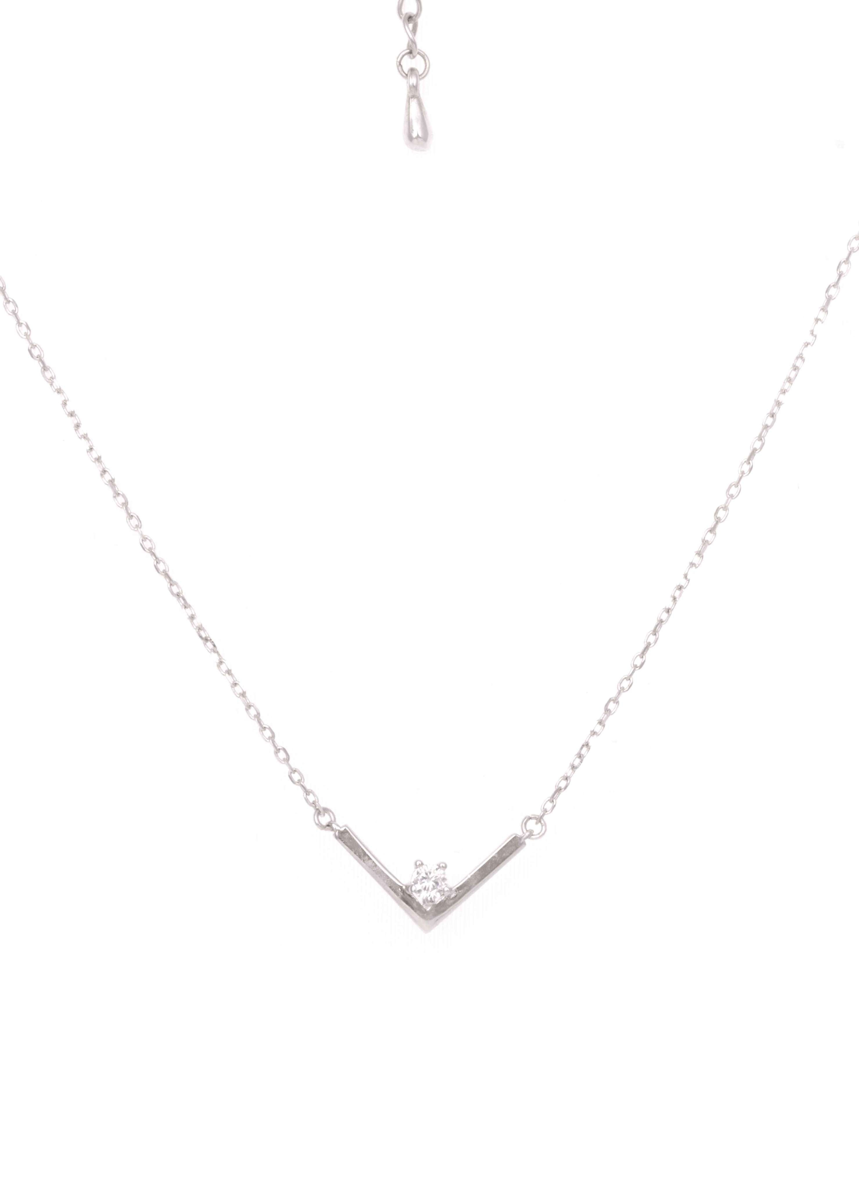 The Chevron Necklace is a modern ode to movement and meaning—featuring a sleek V-shaped pendant that points toward confidence and clarity. Crafted in 92.5 sterling silver and accented with a single, radiant zircon, it’s the kind of piece that quietly commands attention.