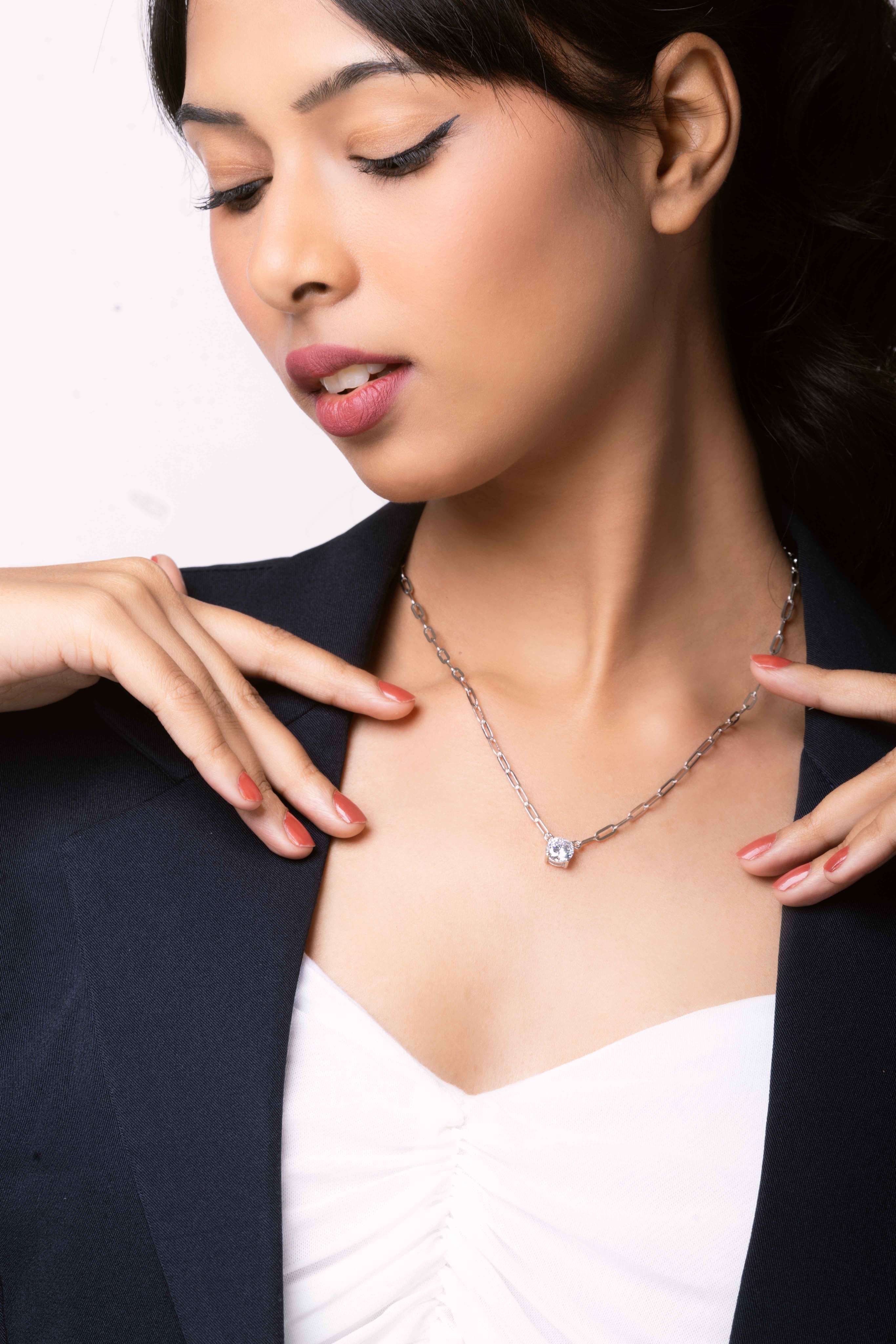 The Crystal Solitaire Necklace embodies the beauty of restraint—featuring a single, brilliant crystal suspended on a fine 92.5 sterling silver chain. Minimalist by design, yet rich in presence, this piece is your everyday signature, quietly radiating grace and intention.