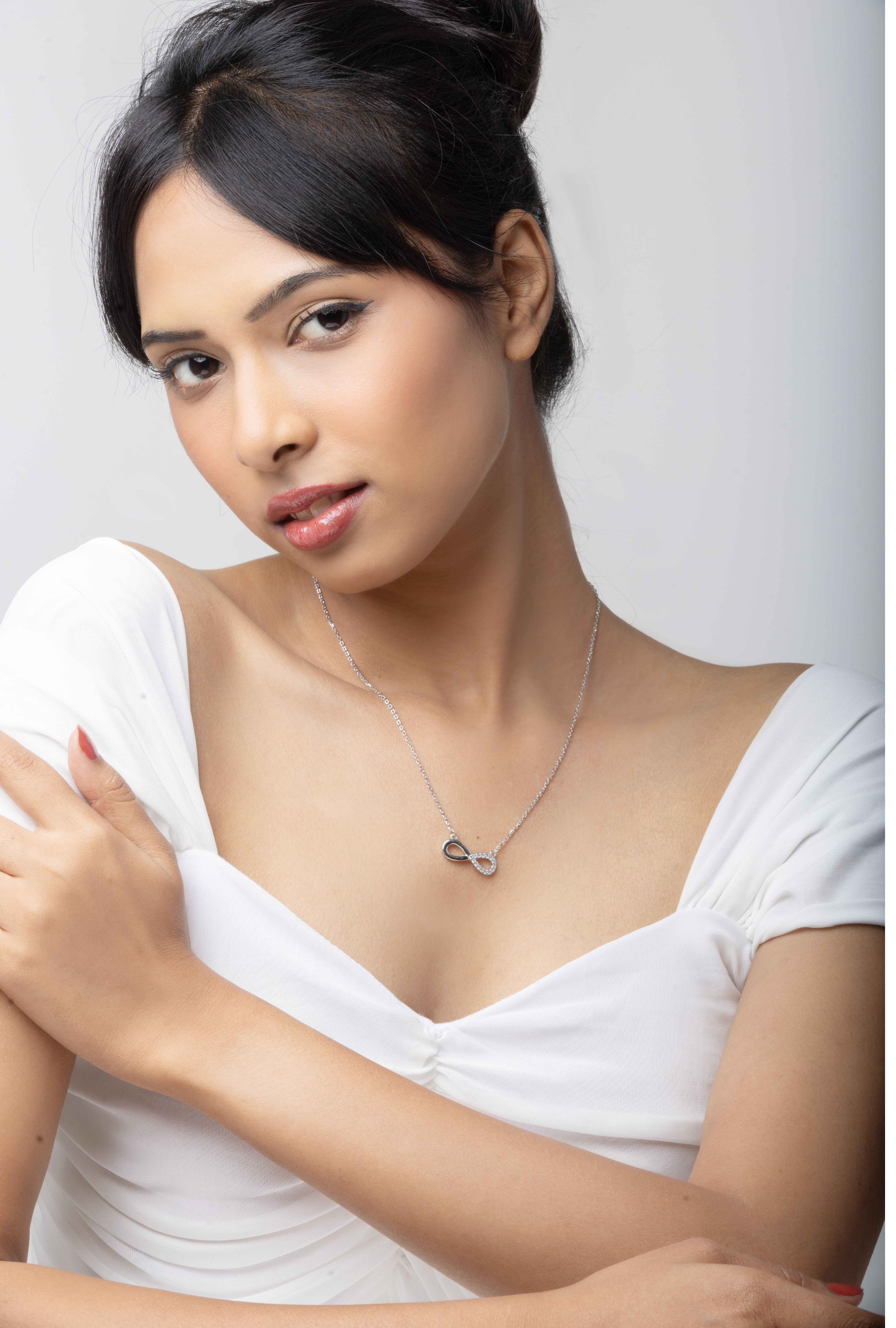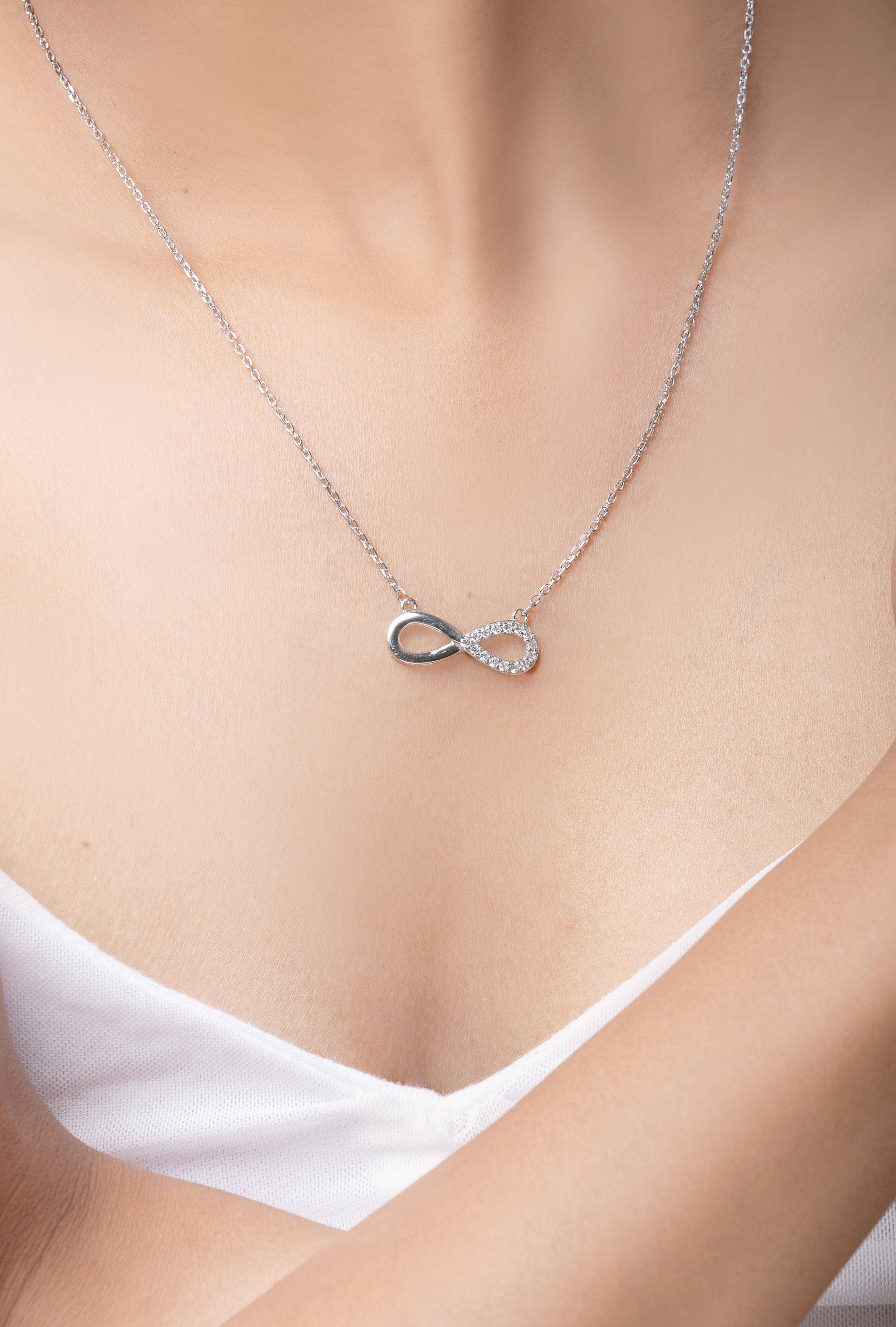 Introducing the Infinity Glow Necklace by Aventara—where elegance meets everlasting symbolism. Crafted in 92.5 sterling silver, its gracefully entwined infinity pendant shimmers with cubic zirconia, a radiant tribute to timeless love and connection.