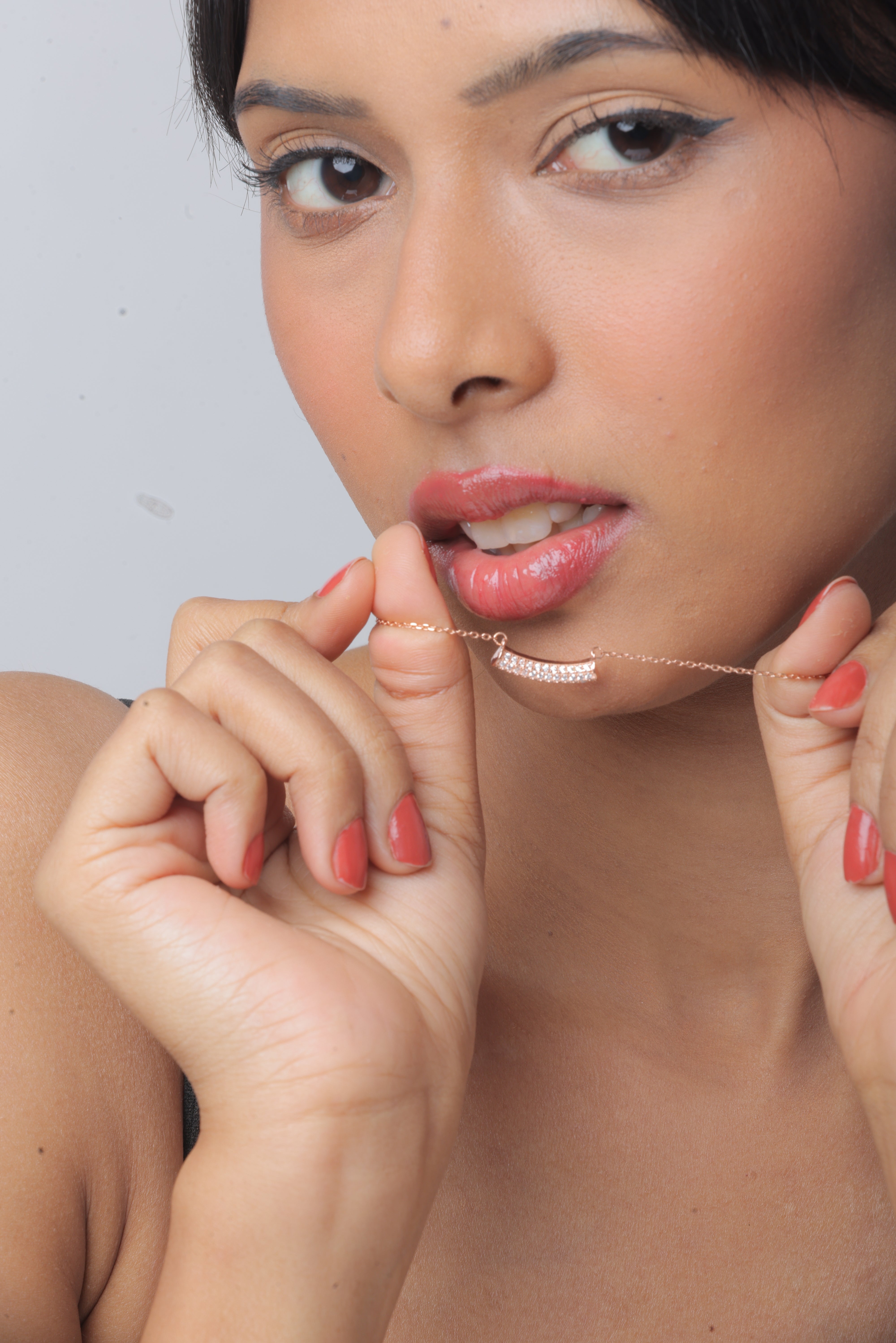 A graceful curve, a symbol of effortless elegance—introducing the Celeste Arc Necklace by Aventara. Crafted in 92.5 sterling silver, this sleek arc-shaped pendant rests delicately along the collarbone, embodying modern minimalism with timeless charm. For those who love a warm, romantic glow, a stunning rose gold-plated variant is also available.