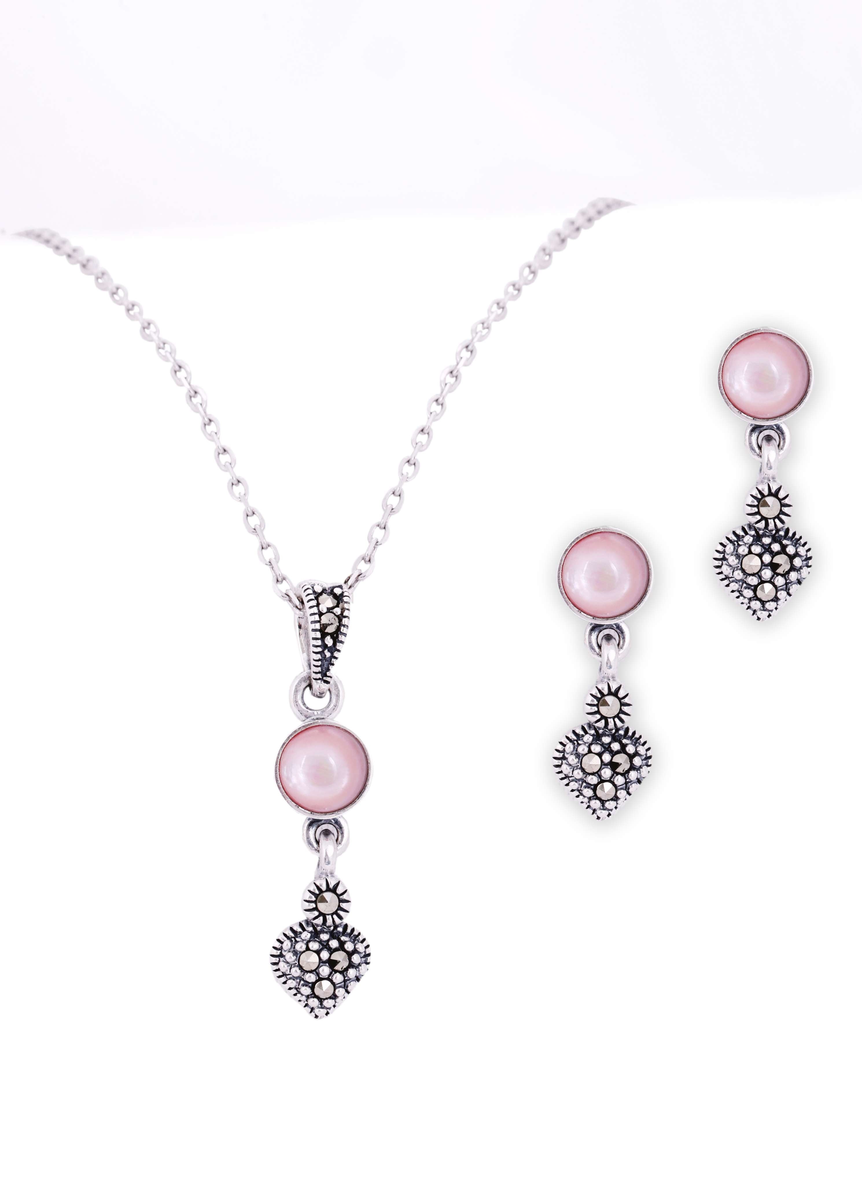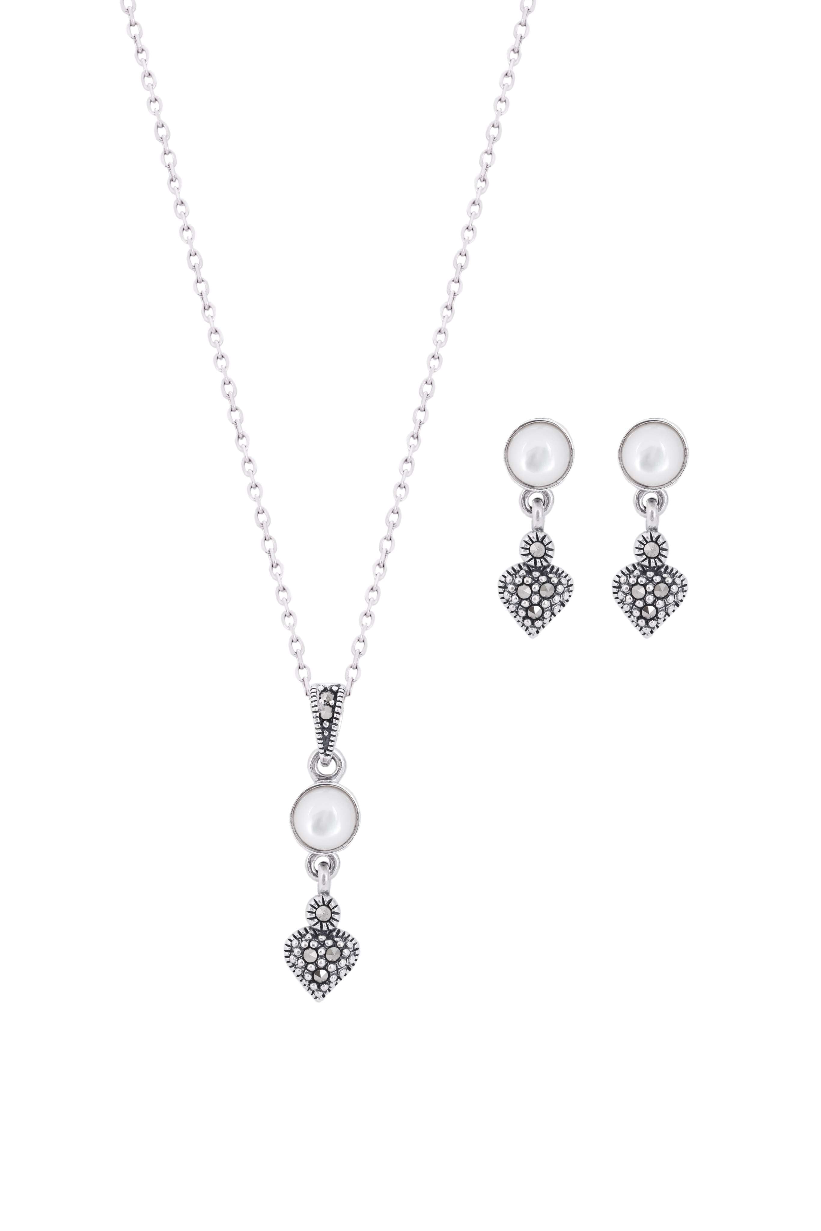 Pearls encased in floral-inspired 92.5 silver motifs. Elegant drops complete this vintage yet modern design.