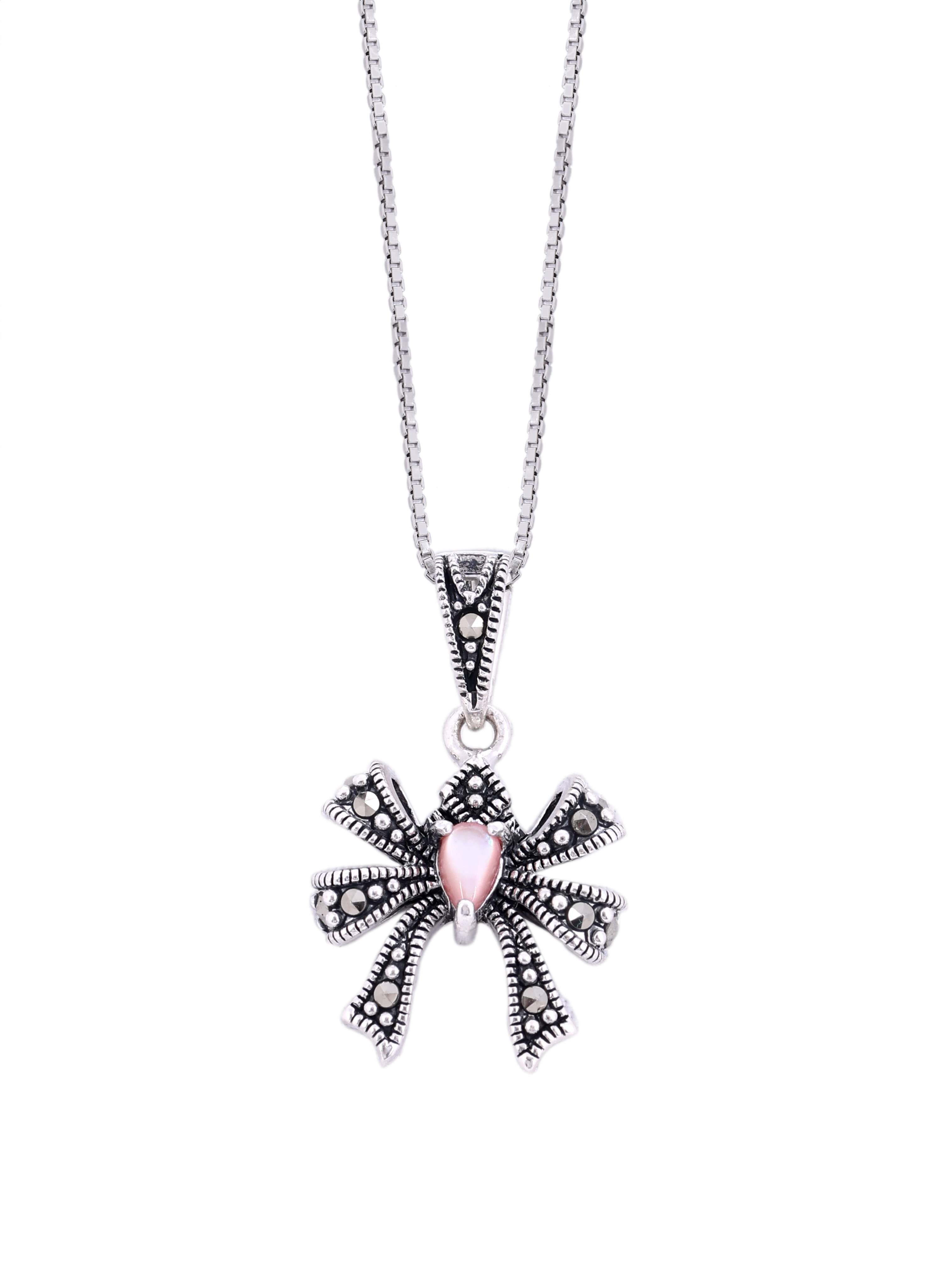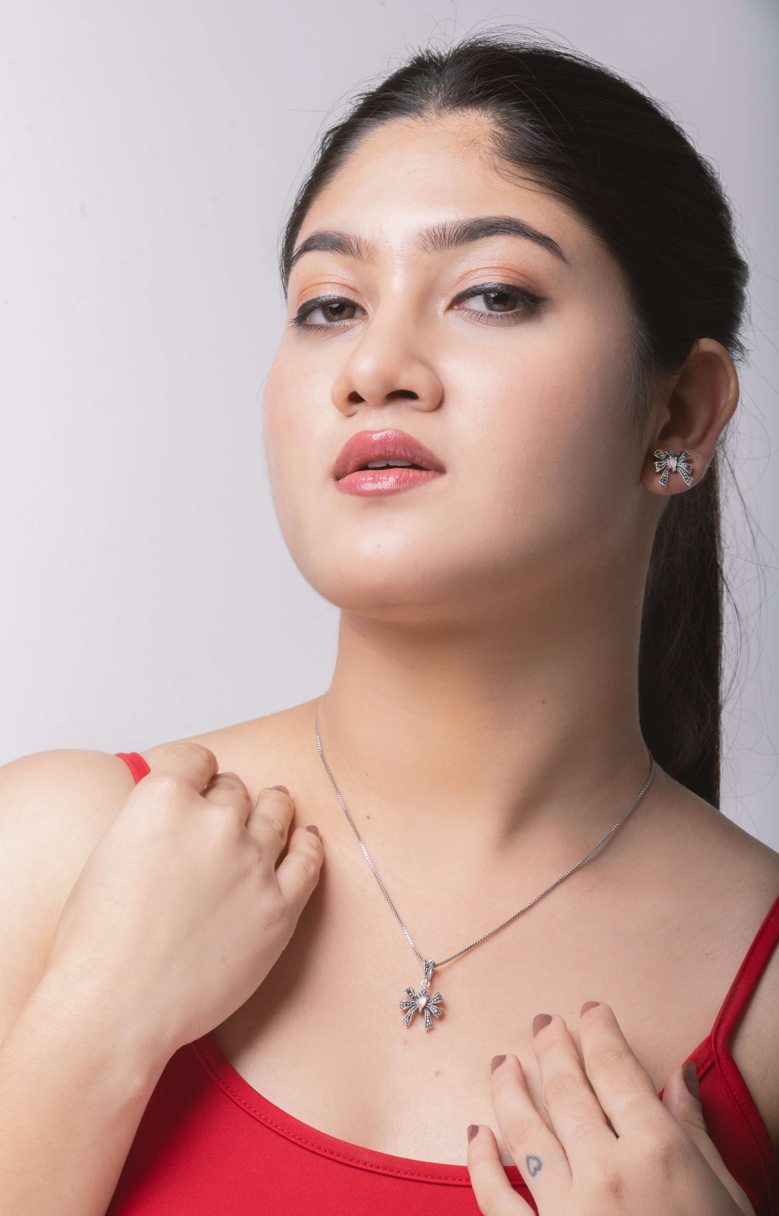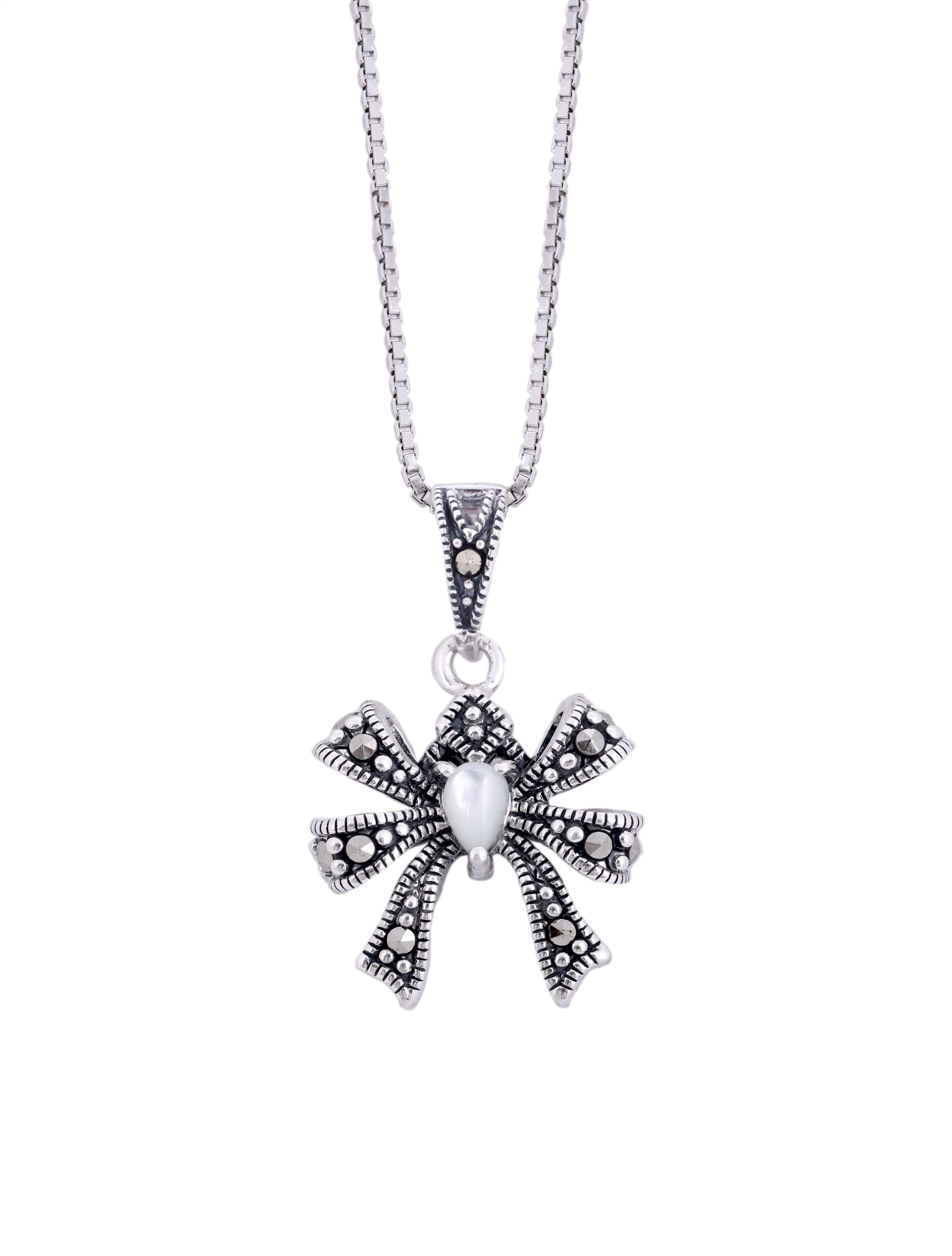 Intricate bow design crowned with a pearl; vintage meets playful chic.