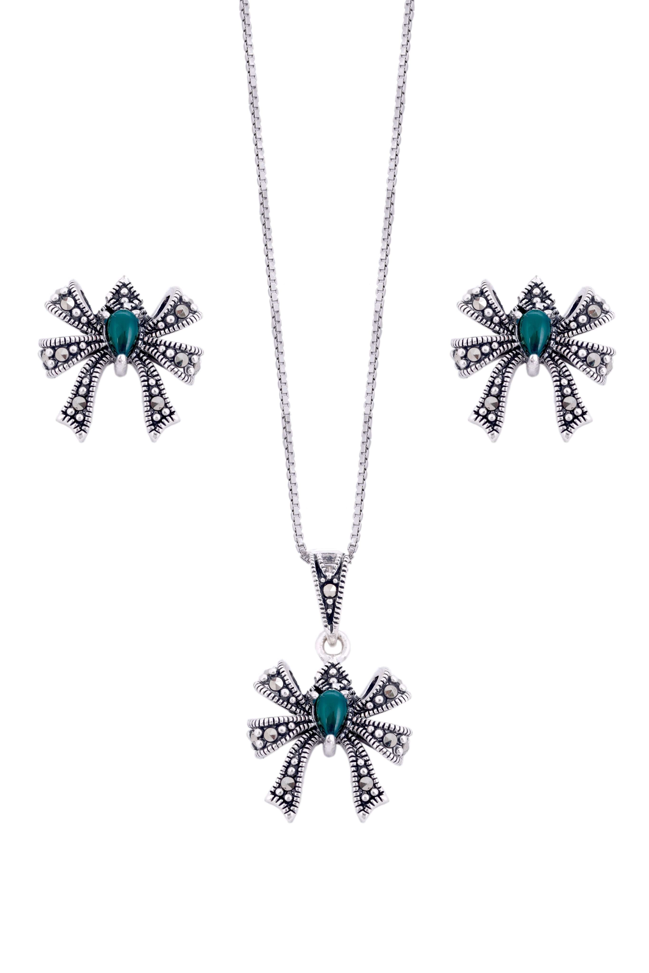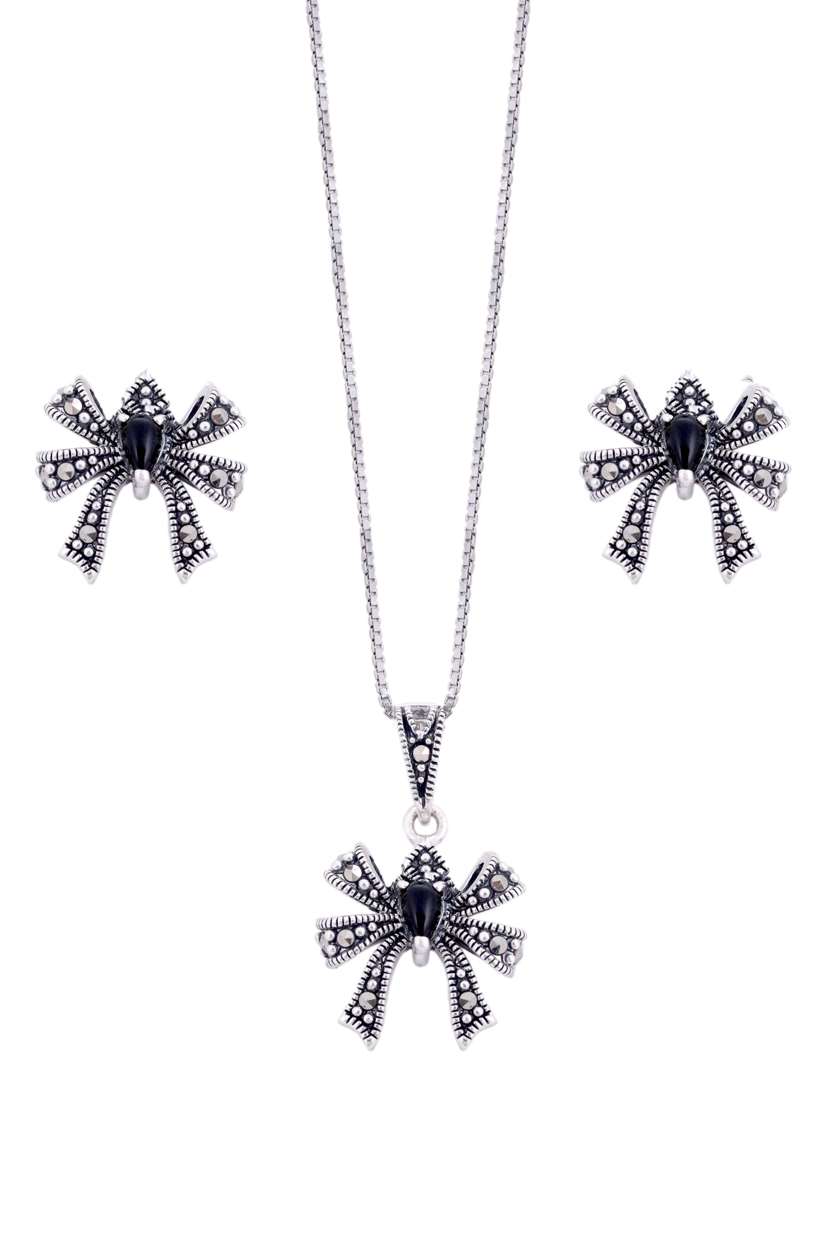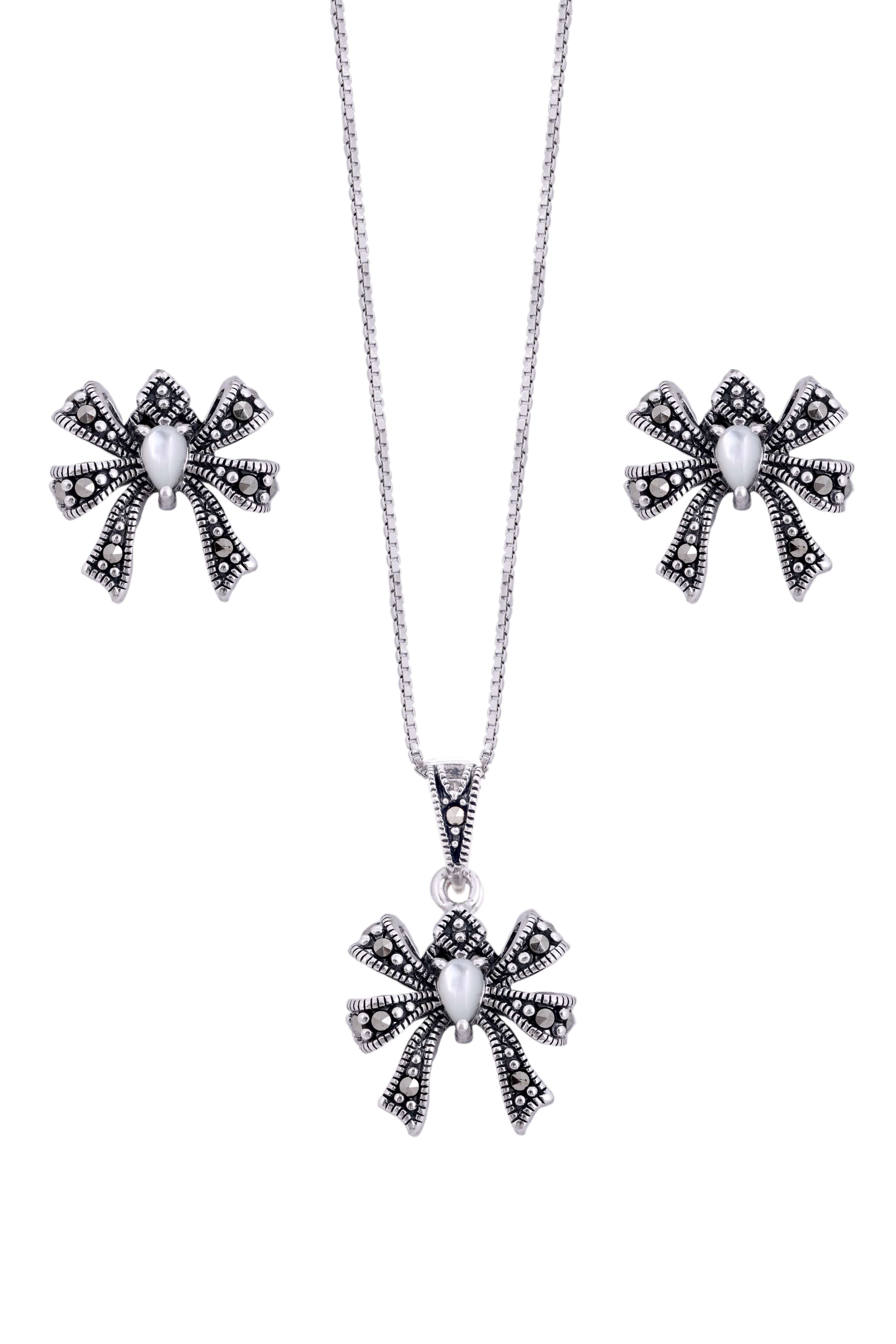 Intricate bow design crowned with a pearl; vintage meets playful chic.