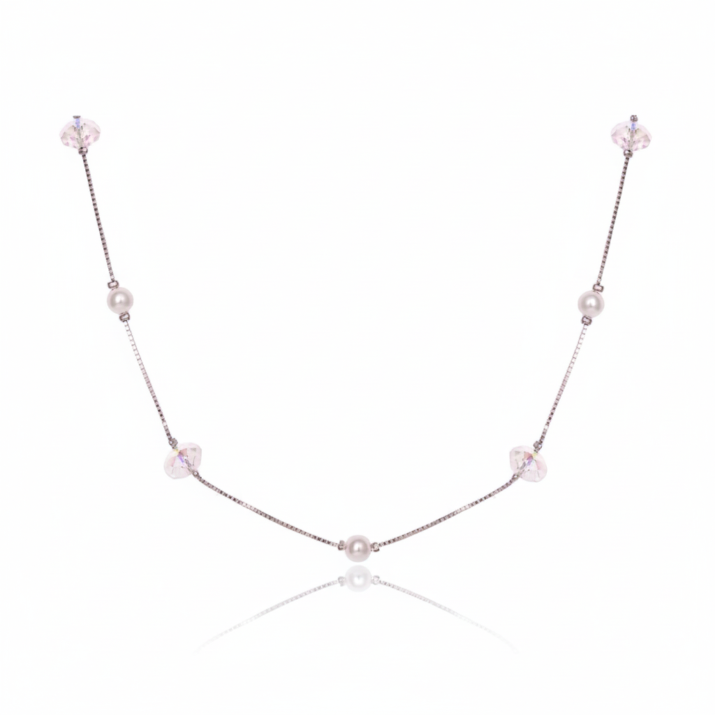 The Design Philosophy: Navigate by your own light. This necklace features a "station" design where luminous pearls and light-catching crystals are suspended like stars in a night sky. It’s a wearable map of moments—each gem representing a point of light or a milestone on your journey.