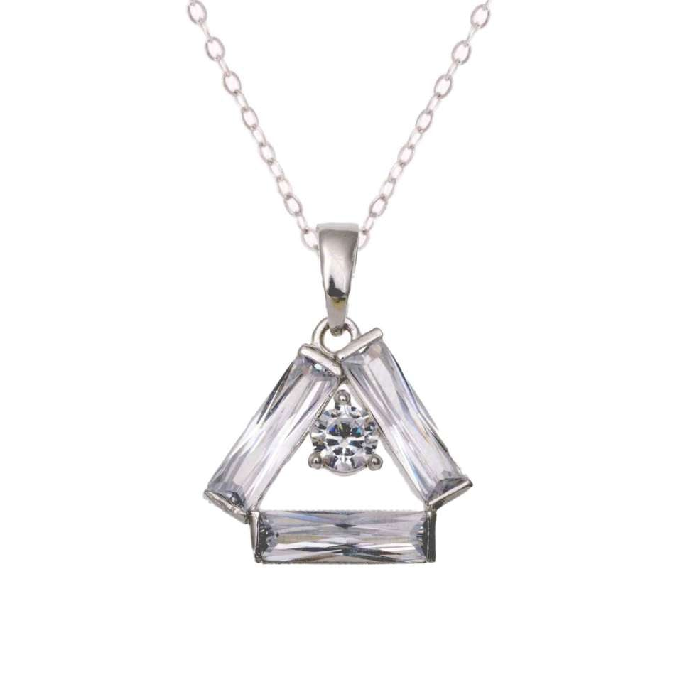 The Crystal Triangle Necklace is for the woman who makes quiet power look effortless. Suspended from a fine 92.5 sterling silver chain, clear prism-cut cubic zirconia with delicate stone accent catches light with every move.