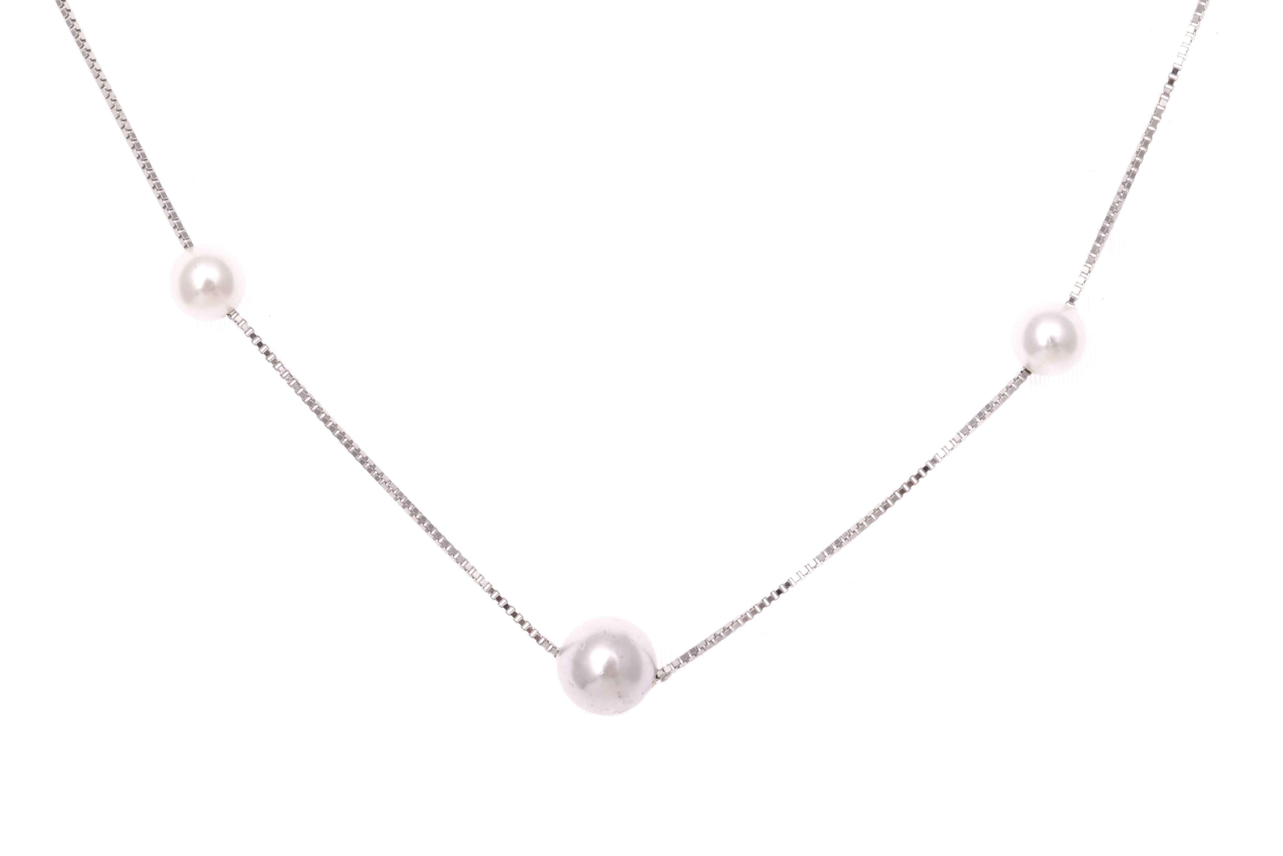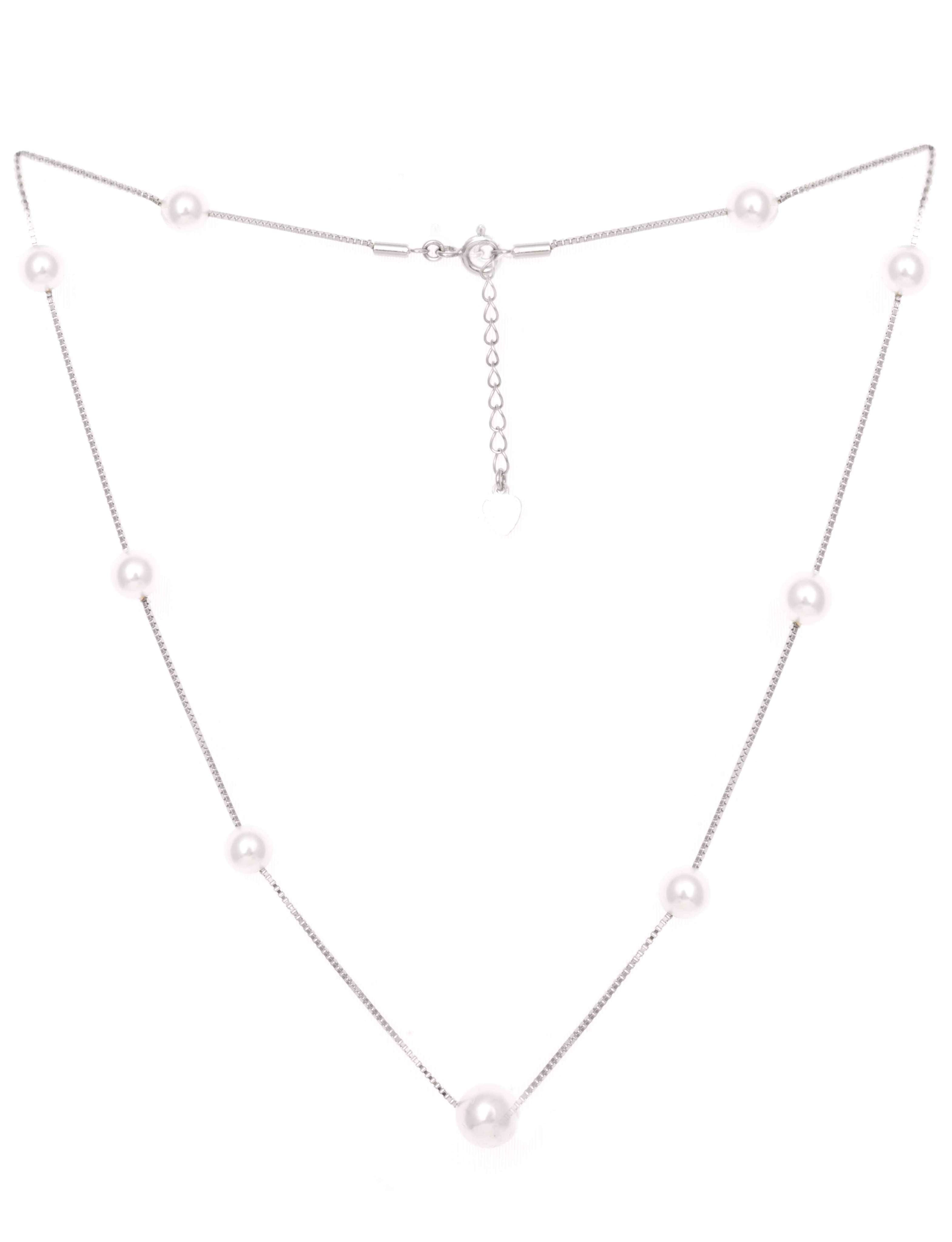 Unveil timeless beauty with the Classic Pearl Strand Necklace from Aventara. This exquisite piece features a delicate sterling silver chain, gracefully adorned with lustrous pearls that radiate sophistication.