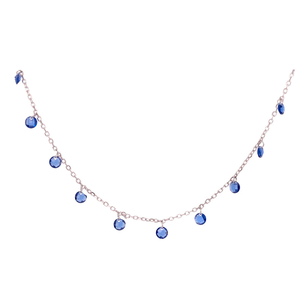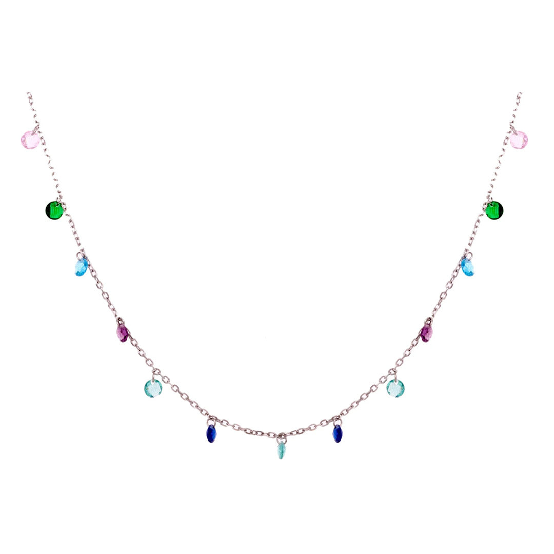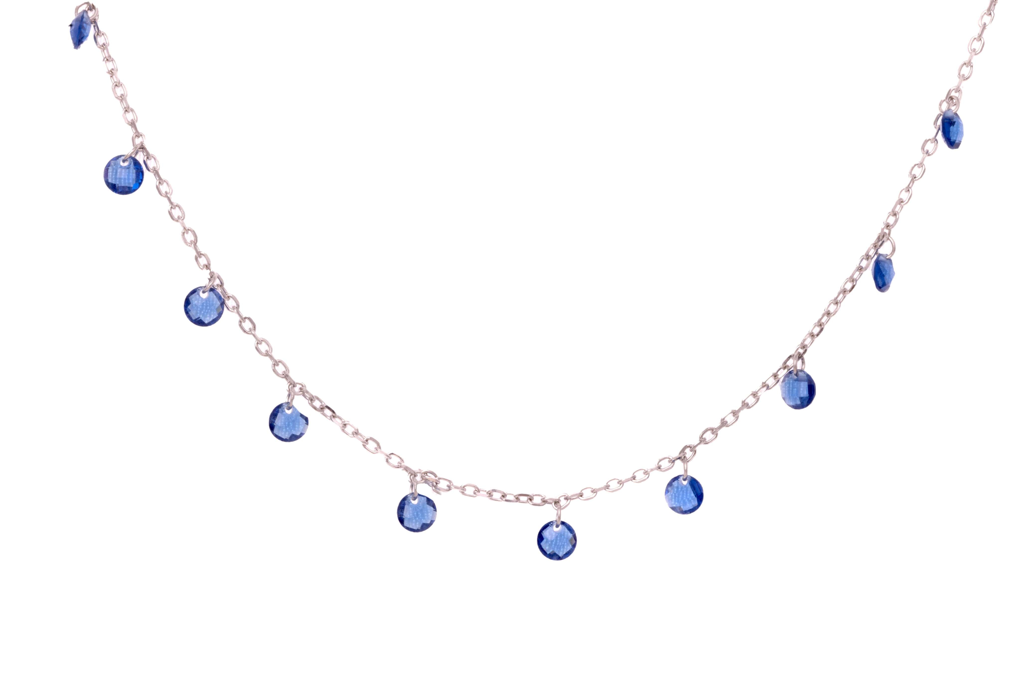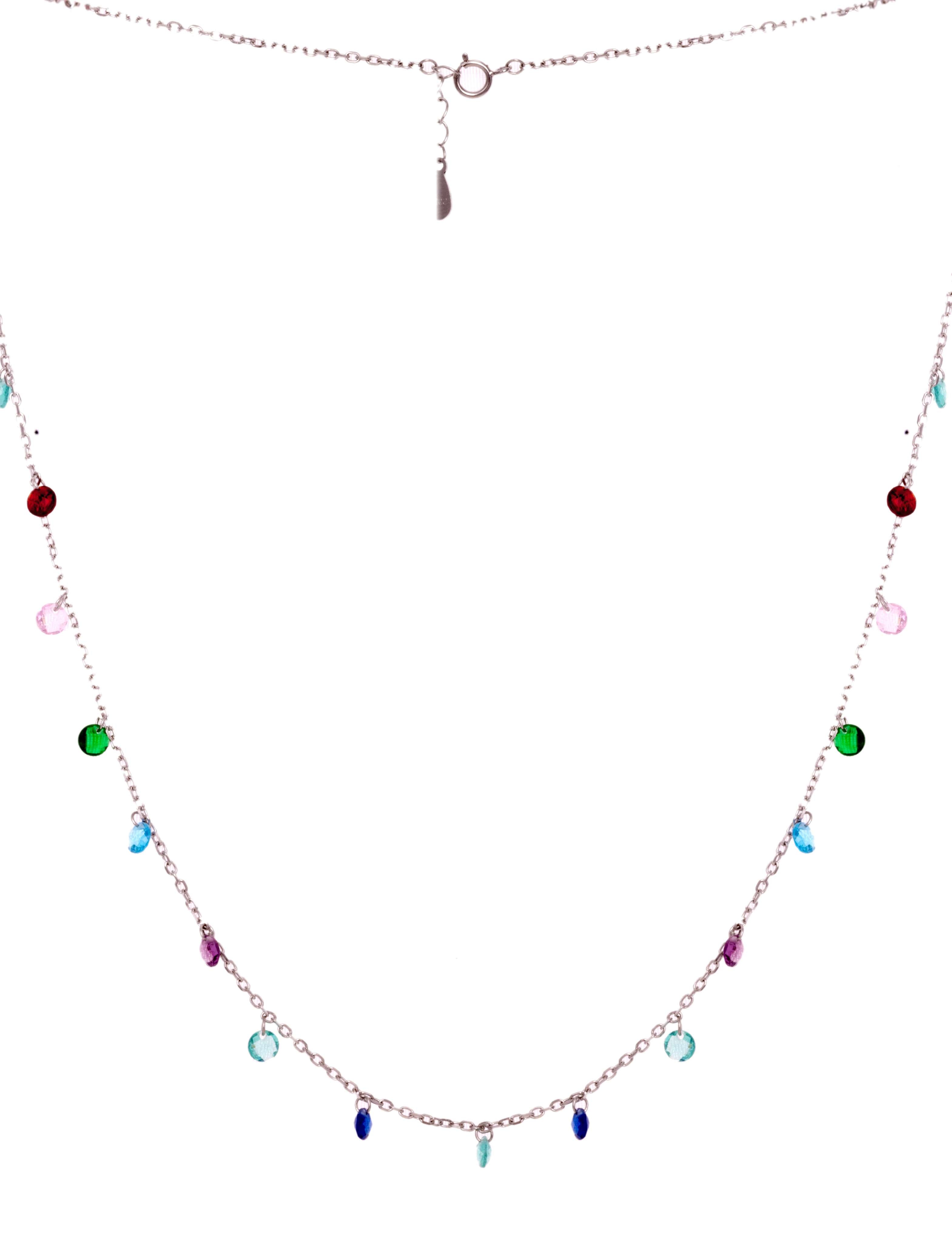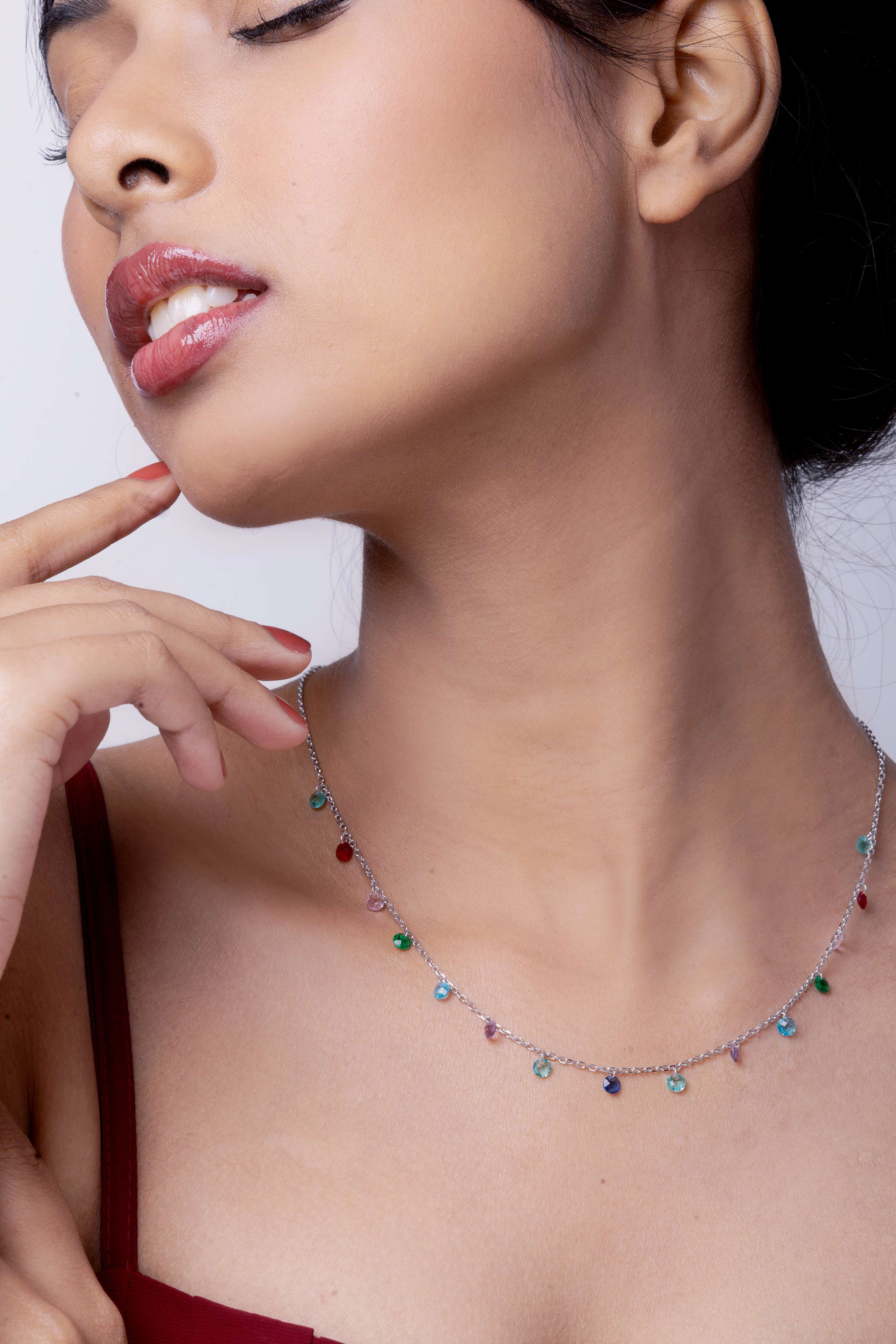 The Ocean Drop necklace features a delicate sterling silver chain from which a series of exquisite teardrop-shaped gemstones gracefully dangle. Each gem, with its captivating hue, evokes the serene beauty of a deep ocean current or a glistening water droplet.