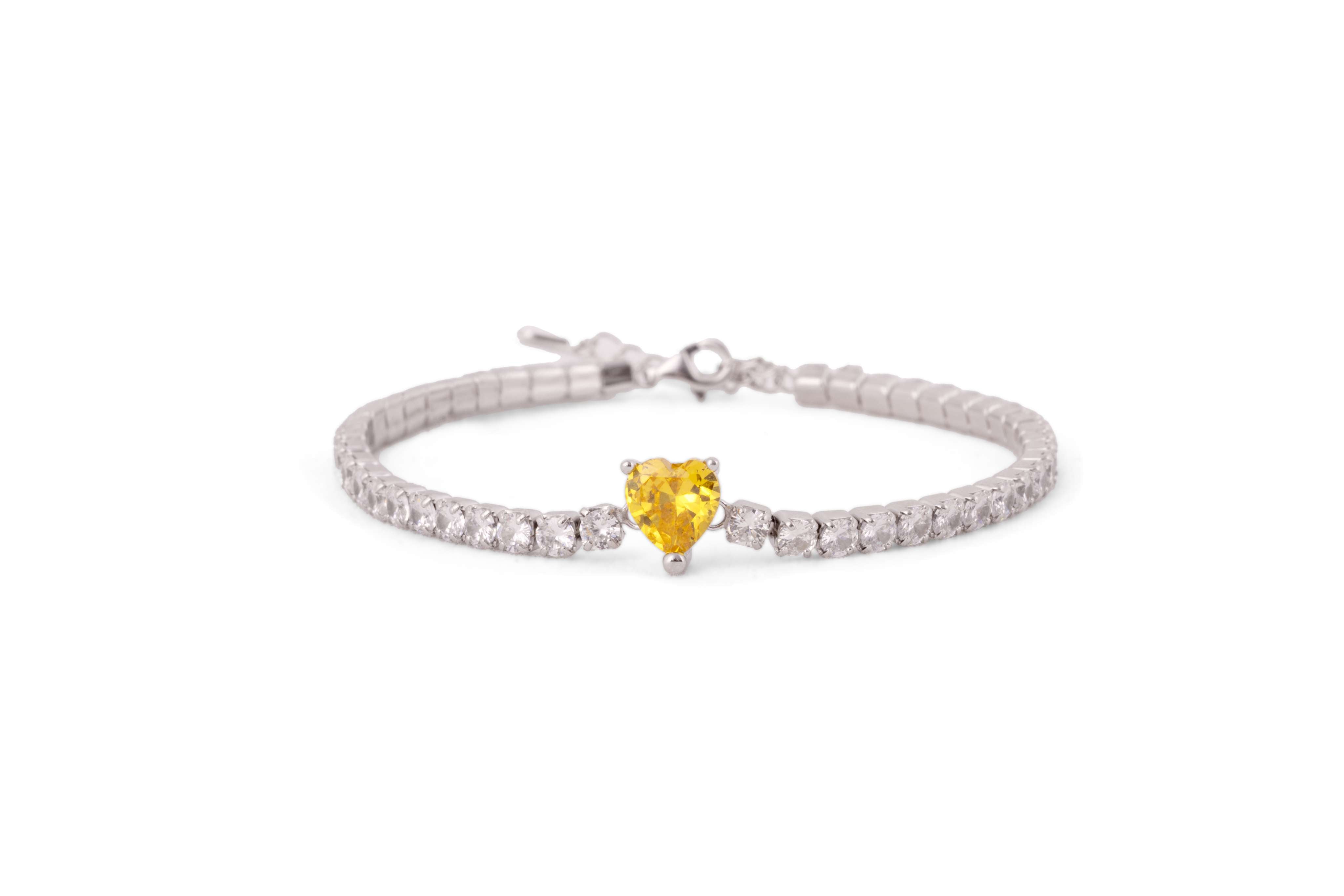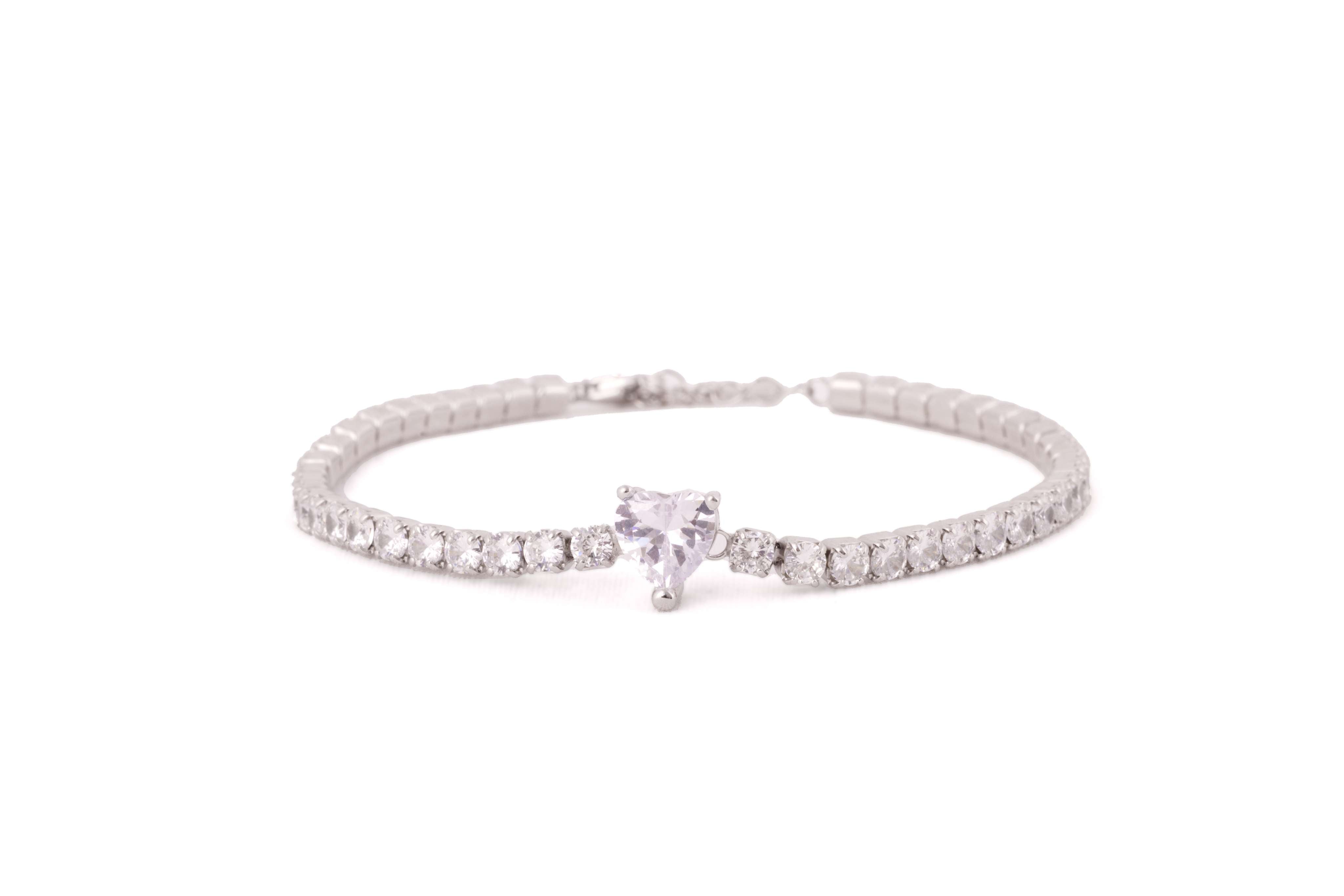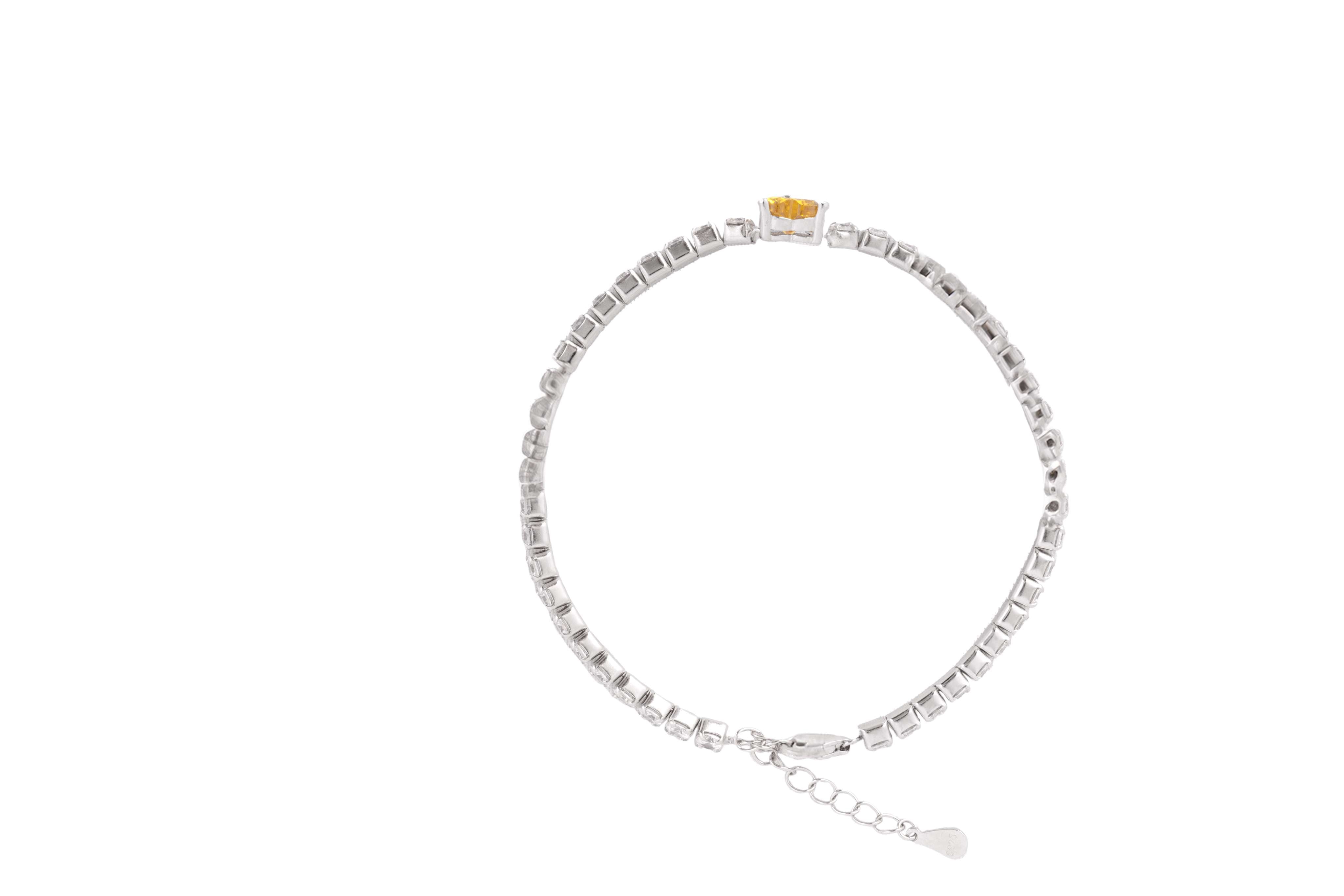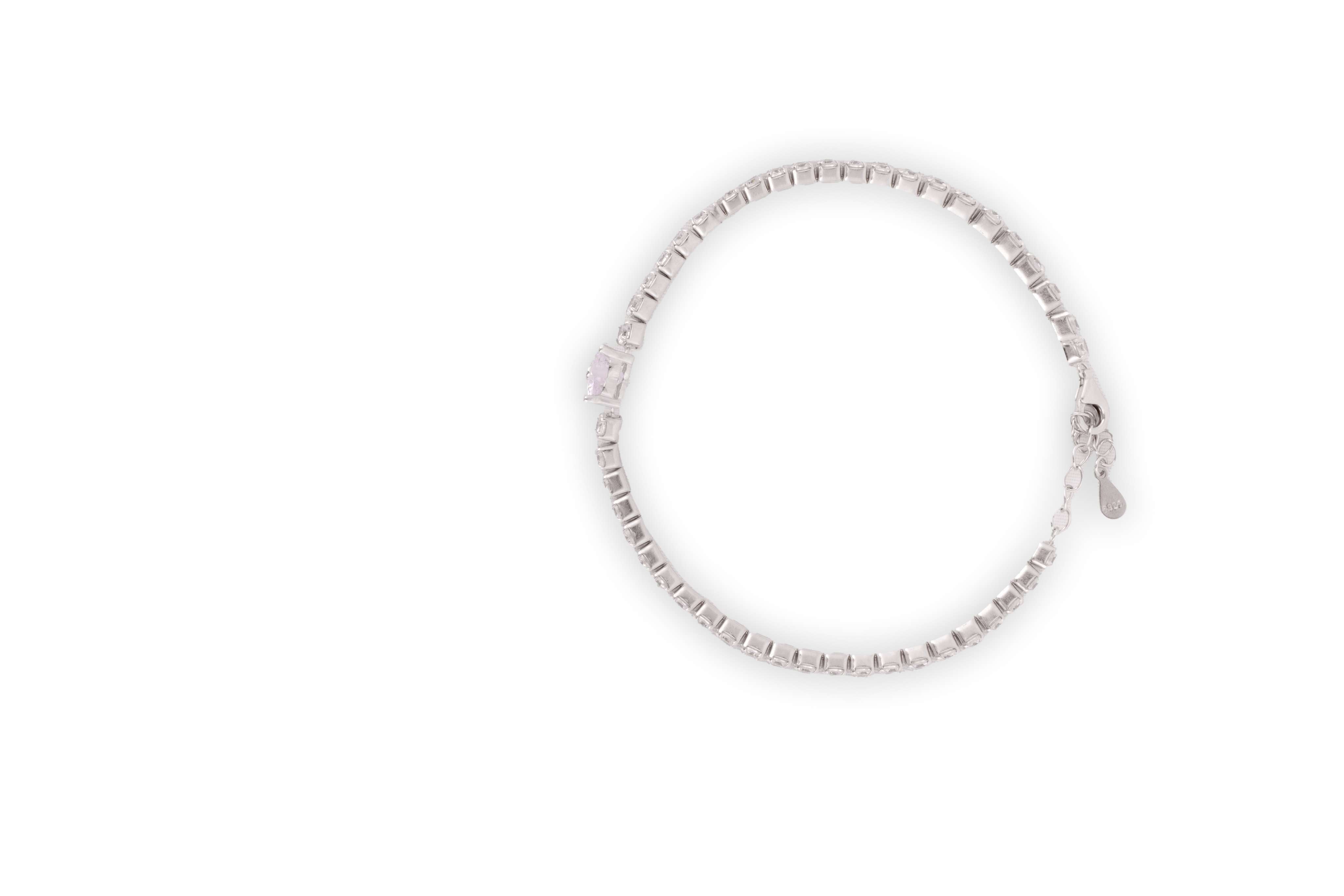 A dainty tennis bracelet with shimmering zircons and a marquise-cut centerpiece. Crafted in 92.5 sterling silver.